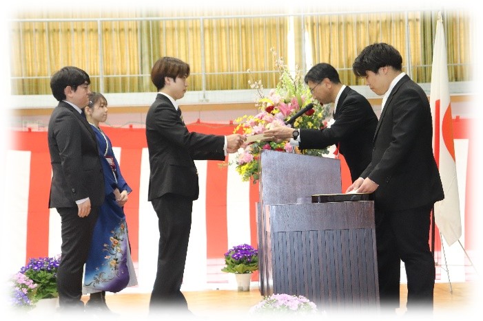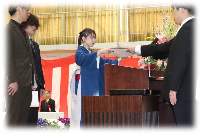 令和7年3月14日(土)に修了式を挙行いたしました。 今年は、3科32名の学生が巣立ち、就職するもの、進学するものでそれぞれ分かれていきます。 本学で学んだことを思い出して社会に出てからも頑張ってください!! 末筆ではございますが、たくさんの祝電、祝詞をいただきまして誠に、ありがとうございました。