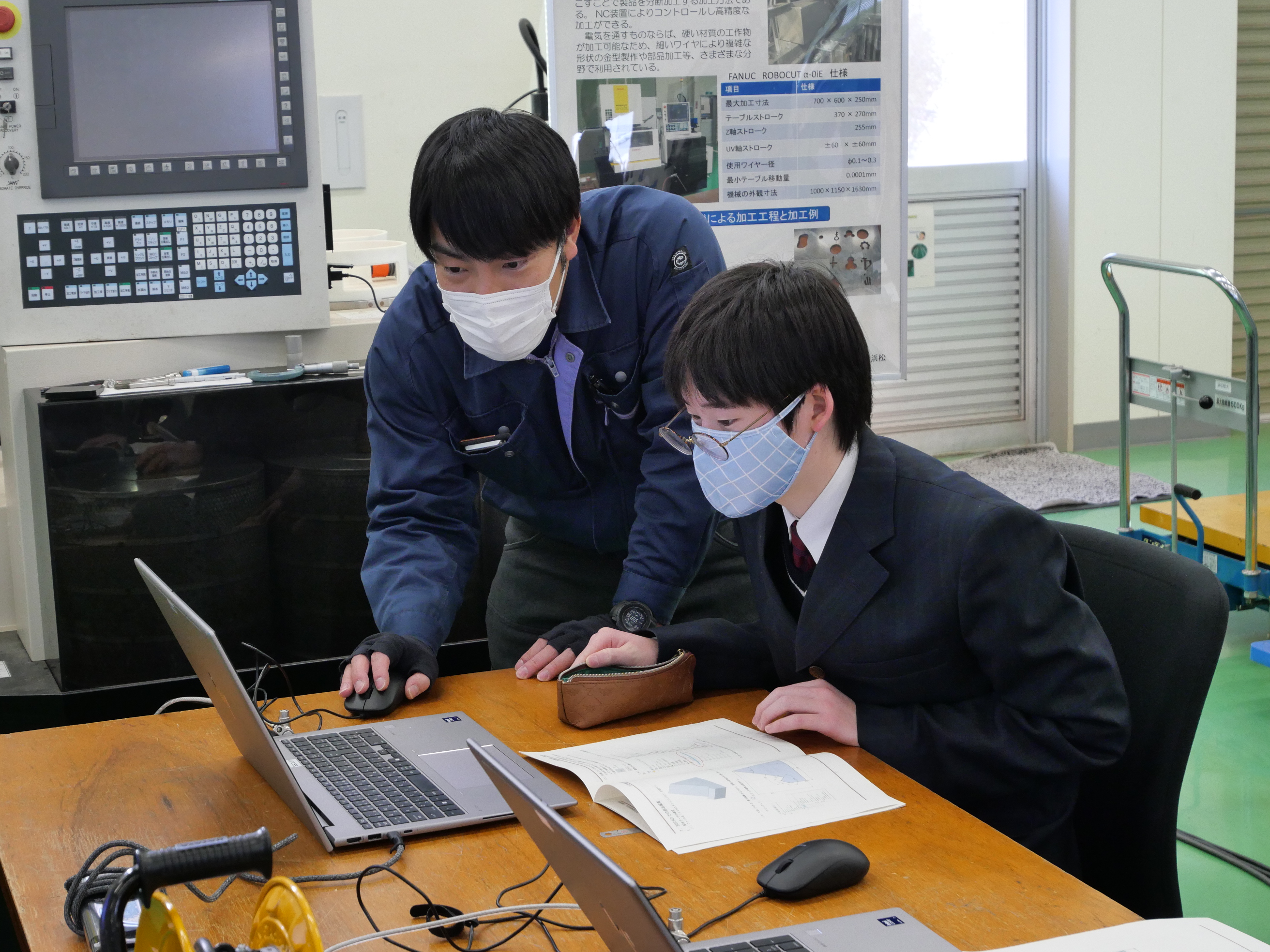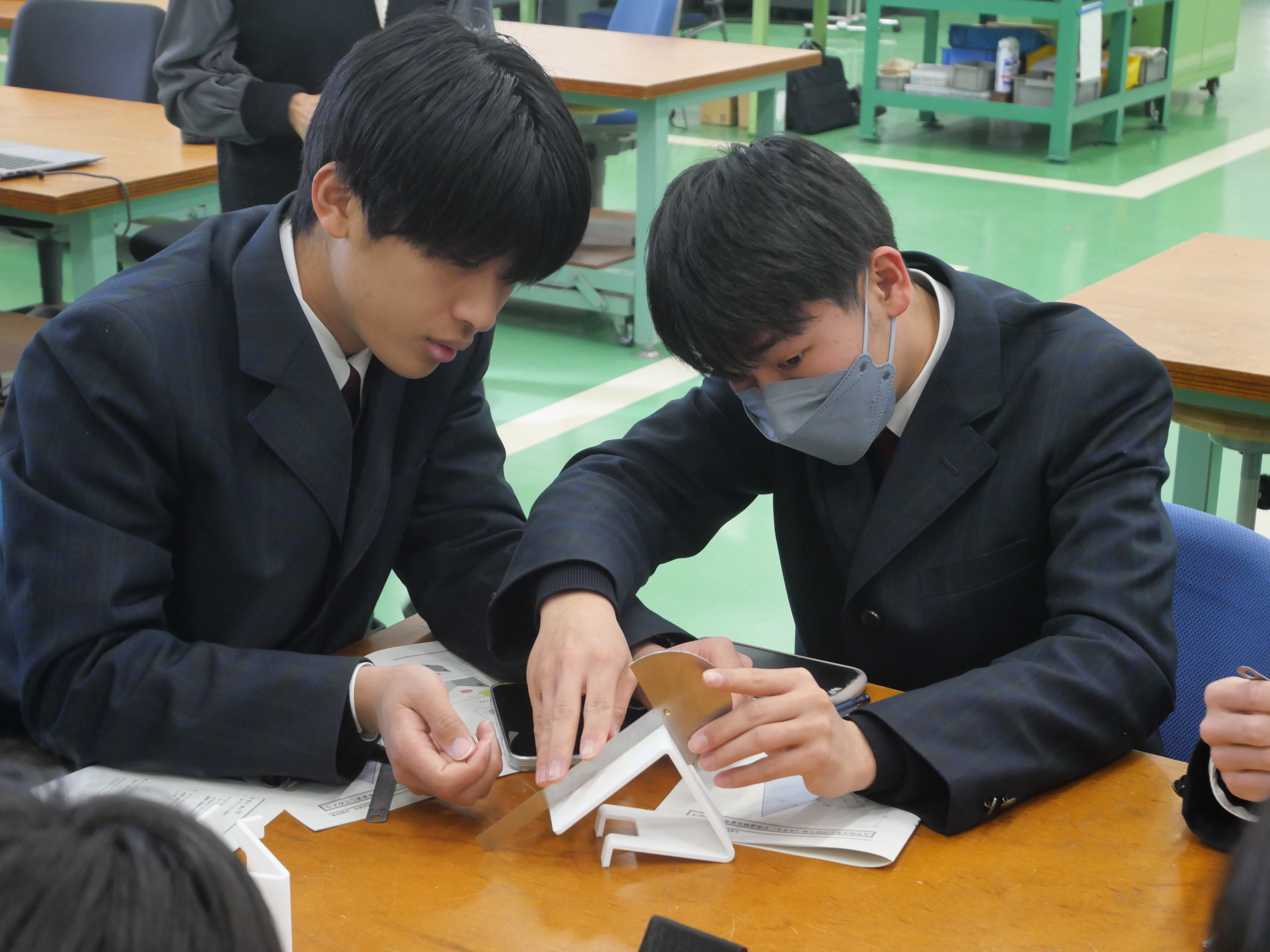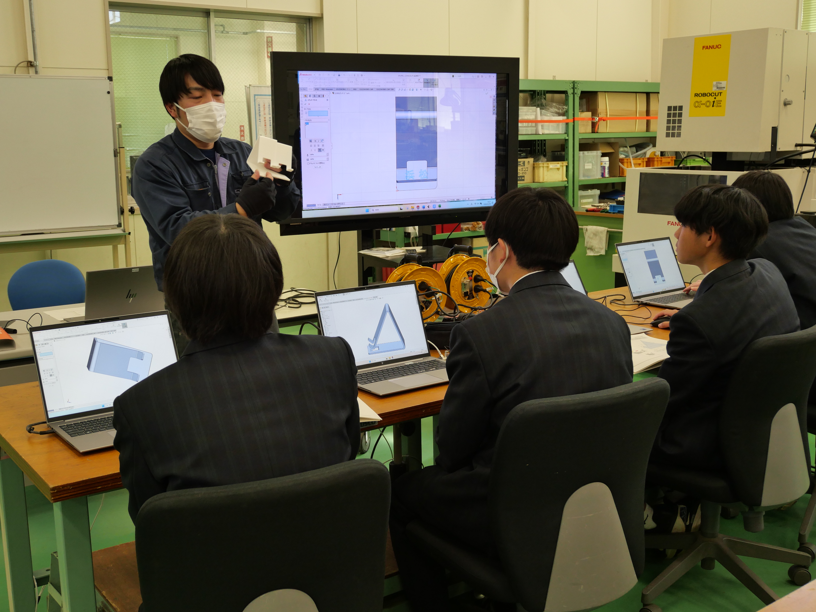 本校についての説明を聞いた後に、生産機械技術科の「3D-CADを使ったデジタルものづくり」を体験していただきました。浜松湖東高等学校の生徒さんたちは質問をするなど、積極的に授業に参加してくださいました。