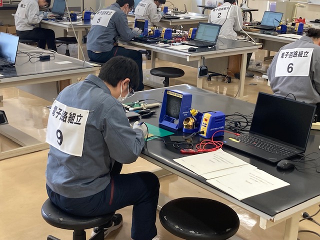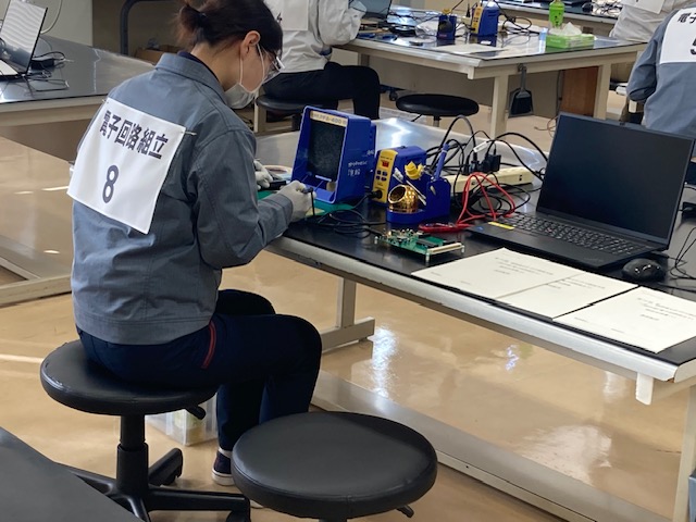 今回は総合の部7部門のうち、機械製図CAD、電子回路組立て、ITネットワークシステム管理の3部門に出場し、機械製図 CAD では1位という好成績を収めました。