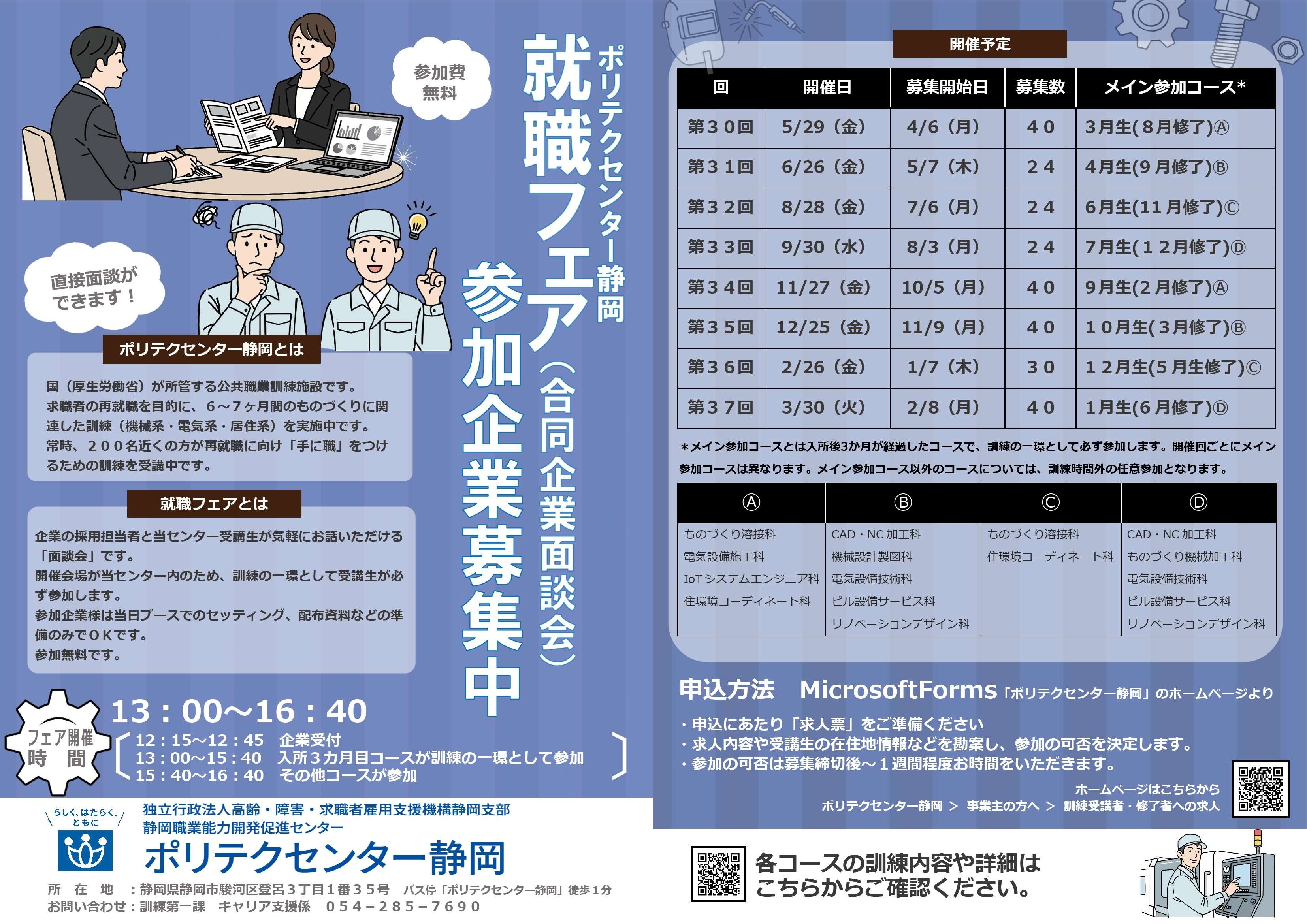 お問い合せ先:054-285-7690(訓練第一課 キャリア支援係)
