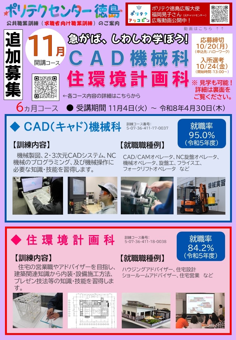 各コースの訓練内容や募集スケジュール、入所までの流れ等の情報が満載ですので、是非ご覧ください。