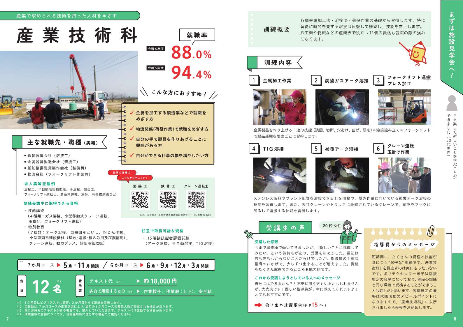 短期間に、たくさんの資格と技能が身につく “お得な” 訓練です。「産業技術科」を見逃すのは実にもったいないです。