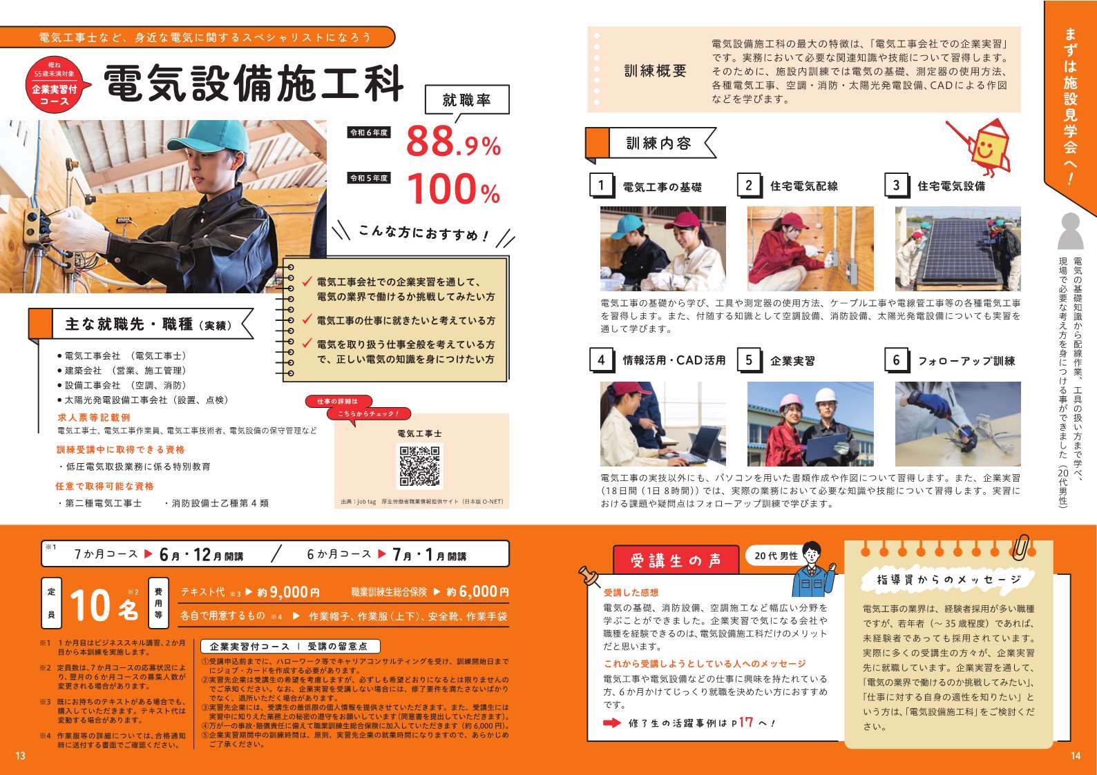 電気工事や電気設備などの仕事に興味を持たれている方、6か月かけてじっくり就職を決めたい方におすすめです。